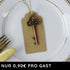 Deko Tipp: Schreibe den Namen des jeweiligen Gastes auf den Kraftpapieranhänger & befestige ihn mit der Juteschnur am Schlüssel. So dient das Gastgeschenk gleichzeitig noch als Namenskärtchen! Alternativ kannst du den Anhänger auch mit einem personalisierten Stempel bestempeln.